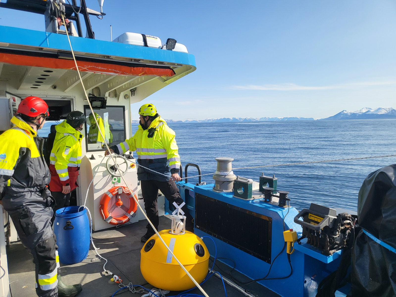 Deployment of an IWOOS mooring close to the northern coastline of Isfjorden, Svalbard. Photo credit: Malte Müller